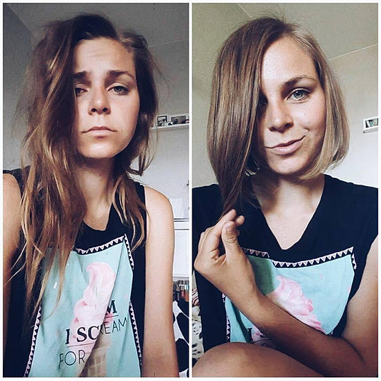 her hair, but I felt a bit unconfident, because I hadn't had scissors in
